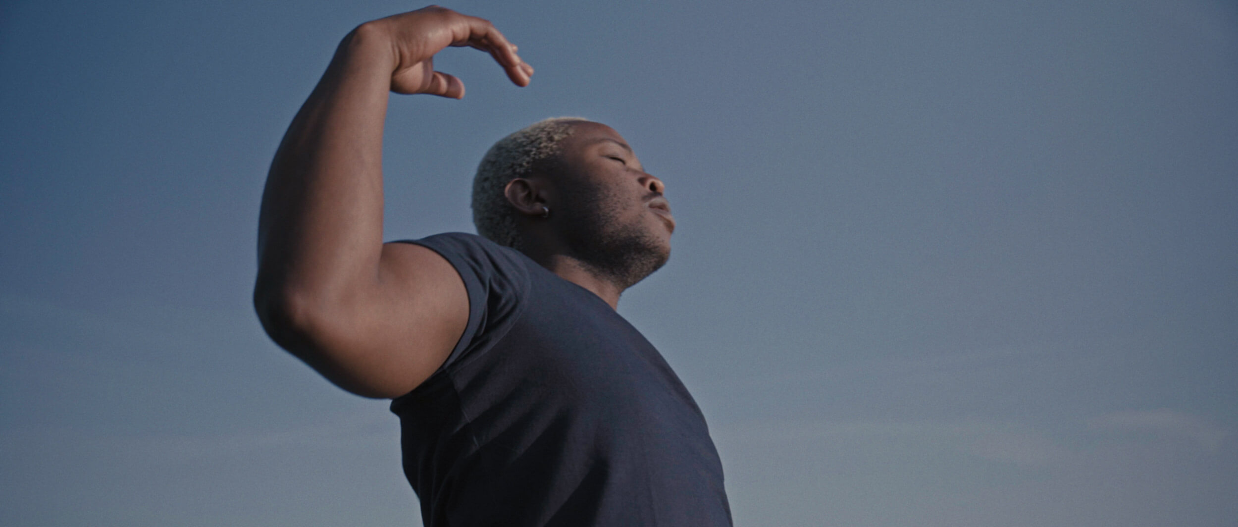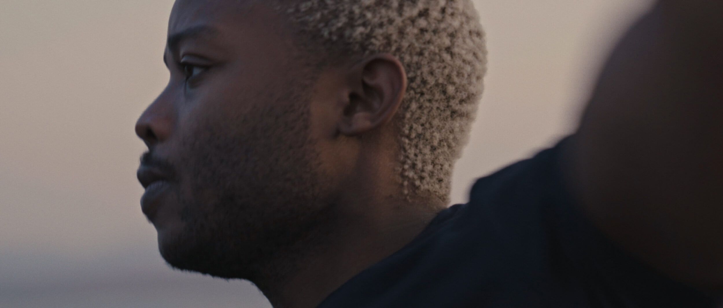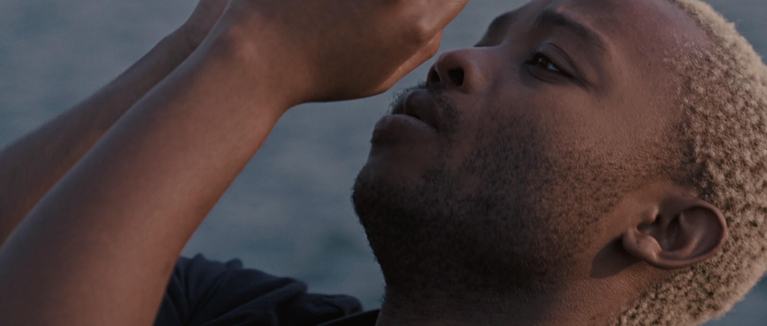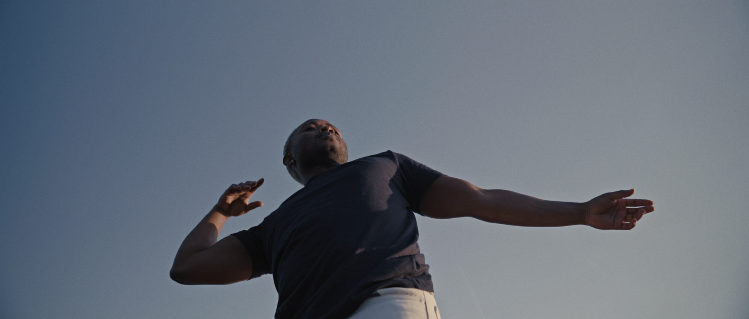 In the early dawn, the camera frames water and reflections, introducing interpretive dancer Bakani preparing for his performance in the ‘Familiarity’ costume.